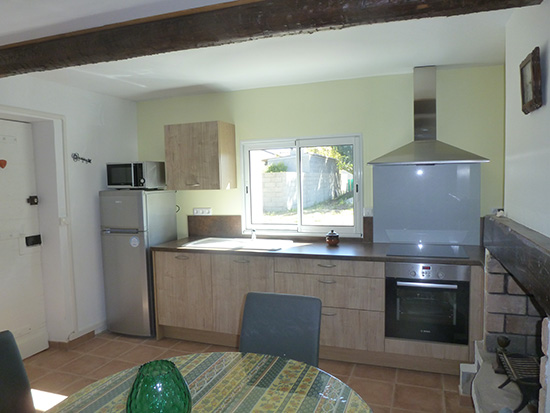 Véranda avec salon d accueil, SEJOUR- SALON avec canapé convertible + TB cuisine équipé, Salle d 'eau, WC,