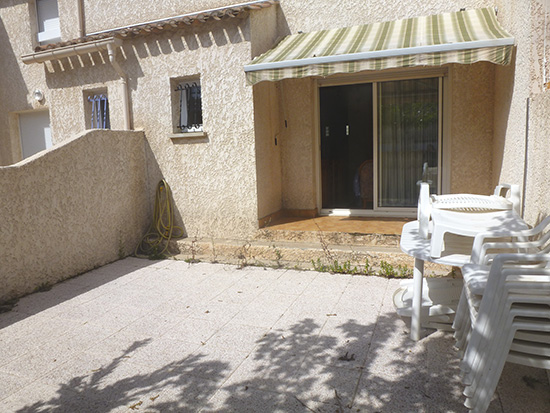 d'une terrasse d'accueil avec accès sur porte d 'entrée