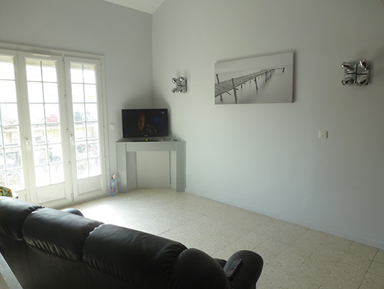 A l’étage : SEJOUR – SALON + coin cabine avec 2 lits superposés, dégagement, WC, salle d’eau, 1 chambre avec literie en 140 (placard et commode)