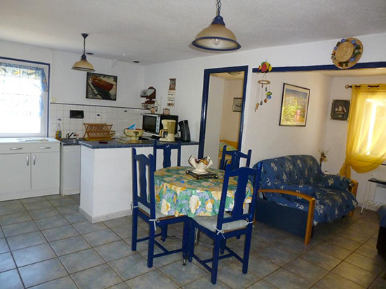 SEJOUR SALON climatisé avec Convertible 2 places + Cuisine américaine équipée, 3 chambres avec chacune literie en 140,